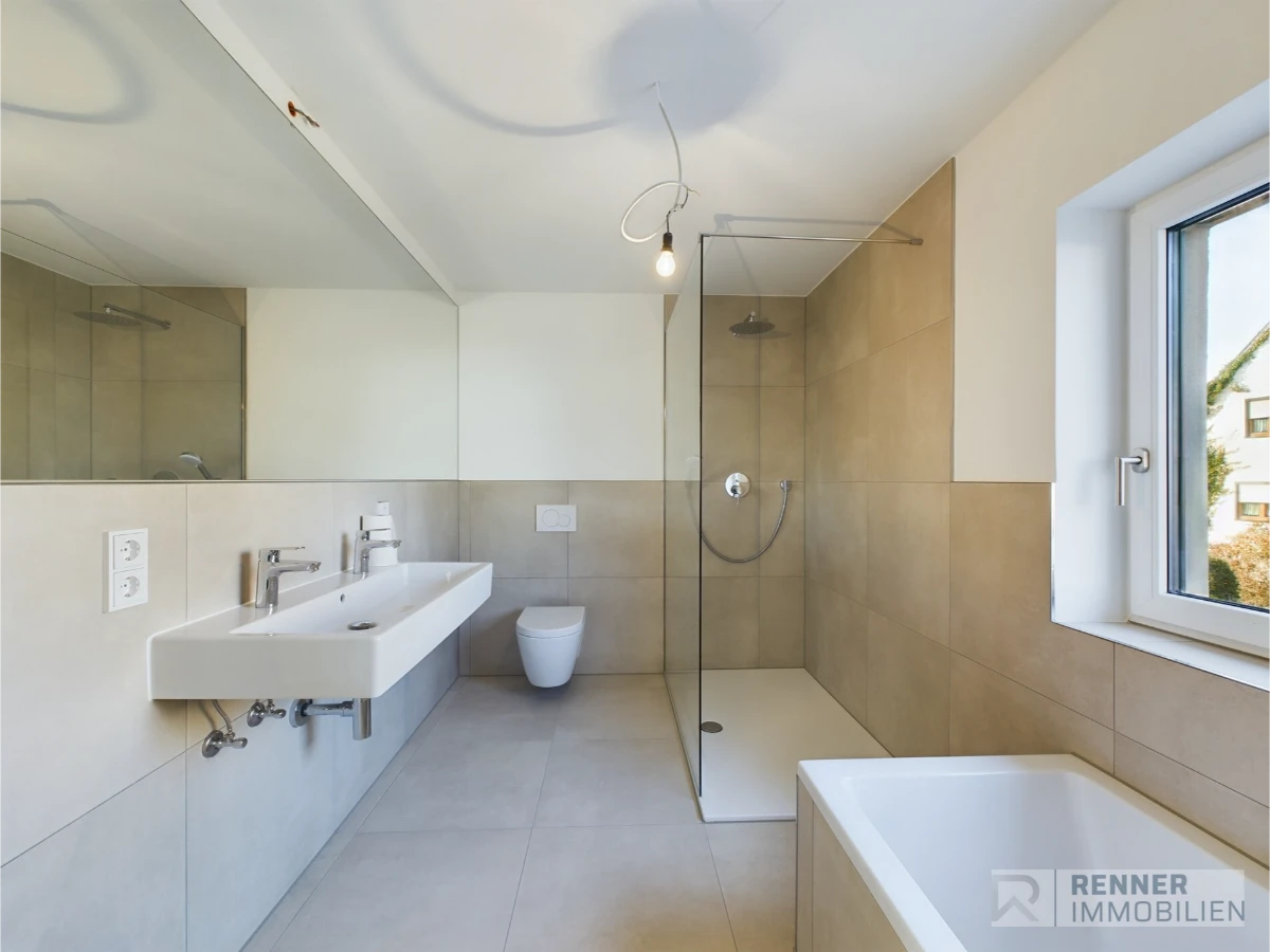 In ruhiger und naturnaher Lage von Lappersdorf, in unmittelbarer Nähe zur Stadt Regensburg, erwartet Sie diese hochwertig kernsanierte Wohnung im ersten Obergeschoss, die modernen Wohnkomfort mit stilvollem Design verbindet. Die offene Wohn-, Ess- und Küchenlösung mit großen, teilweise bodentiefen Fenstern sorgt für eine helle, freundliche Atmosphäre und schafft ein luftiges Wohngefühl. Der direkte Zugang zu gleich zwei großzügigen Balkonen erweitert den Wohnraum nach außen und bietet ideale Voraussetzungen für entspannte Stunden im Freien mit Blick ins Grüne. Edles Parkett in allen Wohnräumen sowie glatt verputzte, weiß gehaltene Wände und Decken unterstreichen den zeitlosen und modernen Charakter der Wohnung. Das hochwertig ausgestattete Badezimmer mit bodengleicher Dusche, eleganter Badewanne und großformatigen Fliesen wird zur persönlichen Wohlfühloase, ergänzt durch ein separates Gäste-WC mit Waschmaschinenanschluss. Neben dem großzügigen Wohnbereich verfügt die Wohnung über ein ruhiges Schlafzimmer, ein weiteres flexibel nutzbares Zimmer sowie eine praktische Ankleide mit zusätzlichem Stauraum. Ein Zuhause, das Ruhe, Natur und modernes Wohnen in idealer Lage bei Regensburg harmonisch vereint.
