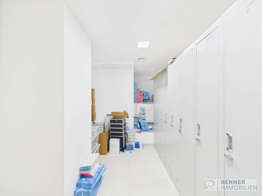 Ein möglicher OP-Raum ist bereits so angelegt, dass er den Anforderungen für kleinere Eingriffe entsprechen kann. Die Bodenbeläge und Oberflächen sind hochwertig und leicht zu reinigen, optimal für medizinische und therapeutische Anwendungen. Ergänzt wird die Fläche durch funktionale Nebenräume wie Lagerflächen, Personalraum und moderne Sanitäranlagen.