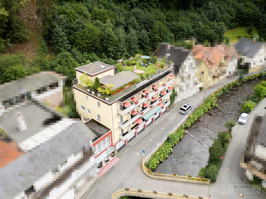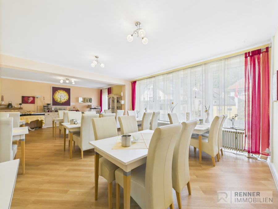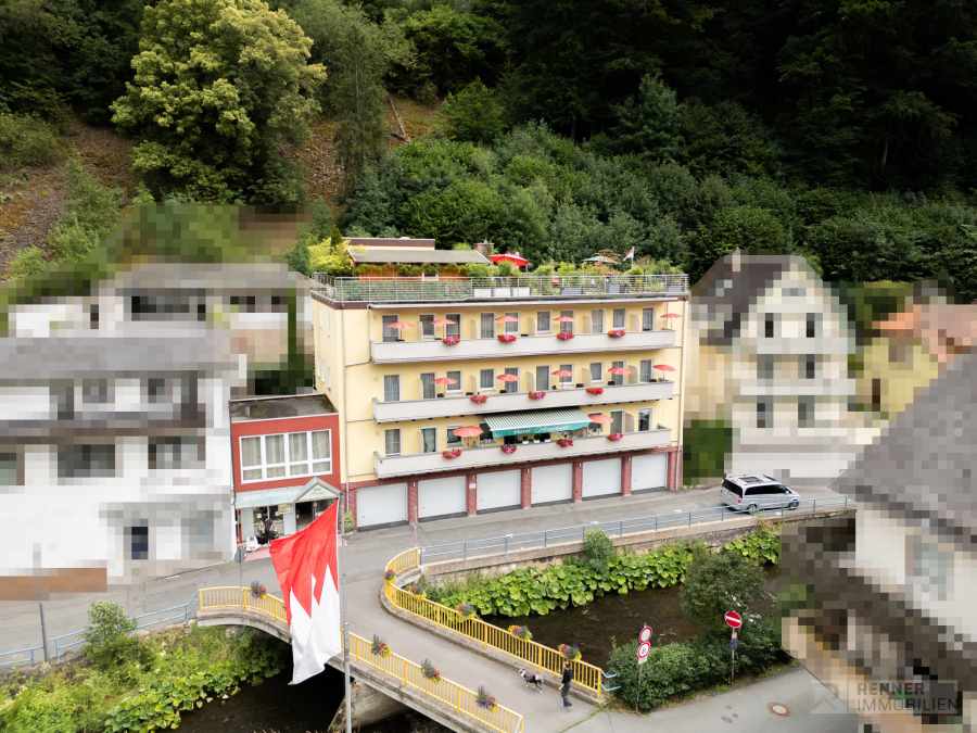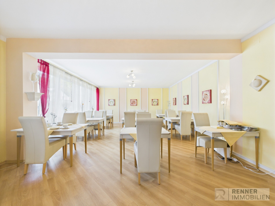 Dieses gepflegte, modernisierte Objekt überzeugt auf ganzer Linie: Der durchdachte Grundriss, die hellen und großzügigen Zimmer sowie eine klare Design-Linie verleihen dem Haus eine zeitlose Eleganz. Auf drei Etagen verteilen sich aktuell 12 hochwertig ausgestattete Gästezimmer verschiedener Kategorien, sowie eine hochwertig sanierte Eigentümerwohnung – jeweils mit Balkon und eindrucksvollem Blick auf die umliegenden Wälder, den Schlossturm und die historische Burgruine.
