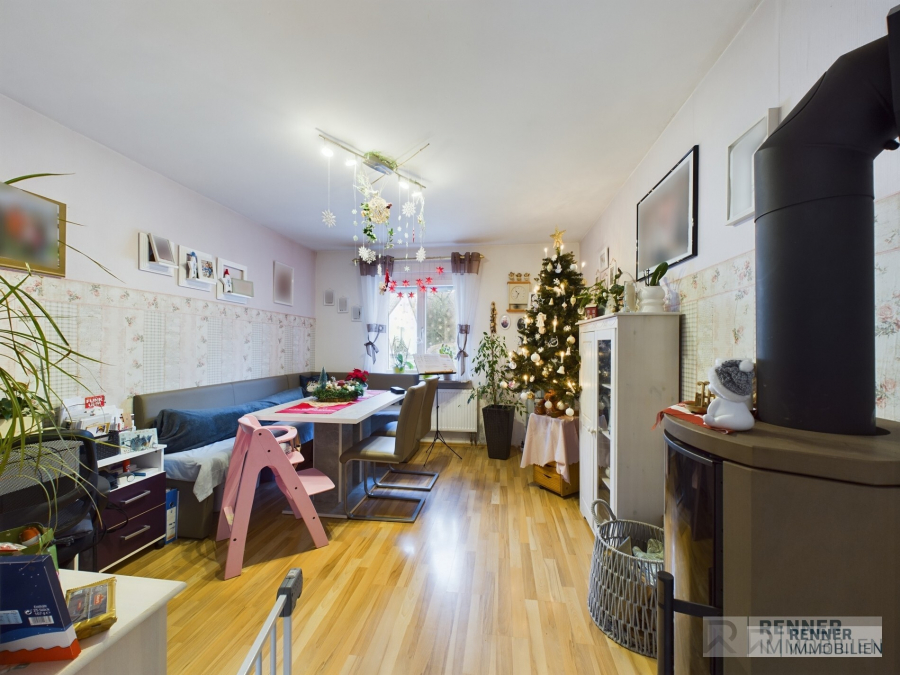 Betreten Sie das Haus und erleben Sie die einladende Atmosphäre die dieses Haus ausstrahlt. Der Wohn-und Essbereich ist mit einem stilvollen Holzfeuerkamin ausgestattet ist. Dieser sorgt für wohlige Wärme und gemütliche Stunden mit der Familie. Die moderne Küche mit praktischem Bartresen, die vor sechs Jahren eingebaut wurde, verbindet das großzüge Wohnzimmer mit dem Esszimmer.
