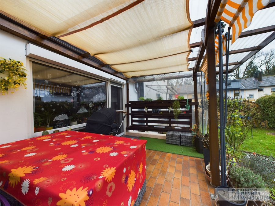 Die großzügige überdachte Terrasse erweitert Ihren Wohnbereich und bietet Platz für entspannte Stunden im Freien. Ob sonnige Frühstücke oder gesellige Grillabende – dieser Ort wird schnell zu Ihrem neuen Lieblingsplatz.