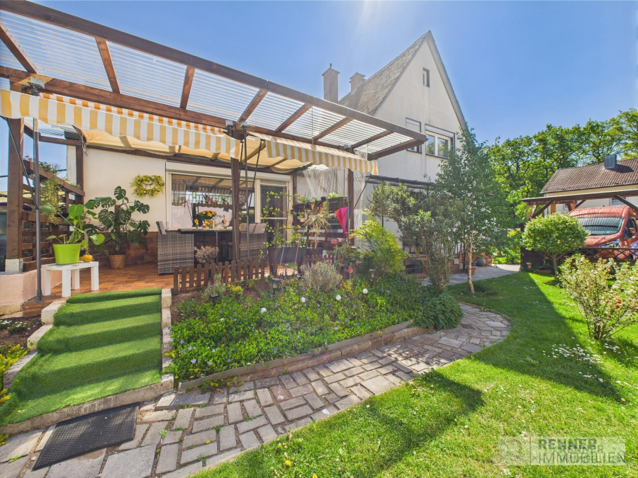 Das 446 m² große Grundstück ist ein wahres Paradies: Ein gepflegter Garten mit Pavillon und ein Carport mit ausreichender Höhe für einen Wohnwagen sowie zwei weitere Stellplätze lassen keine Wünsche offen.