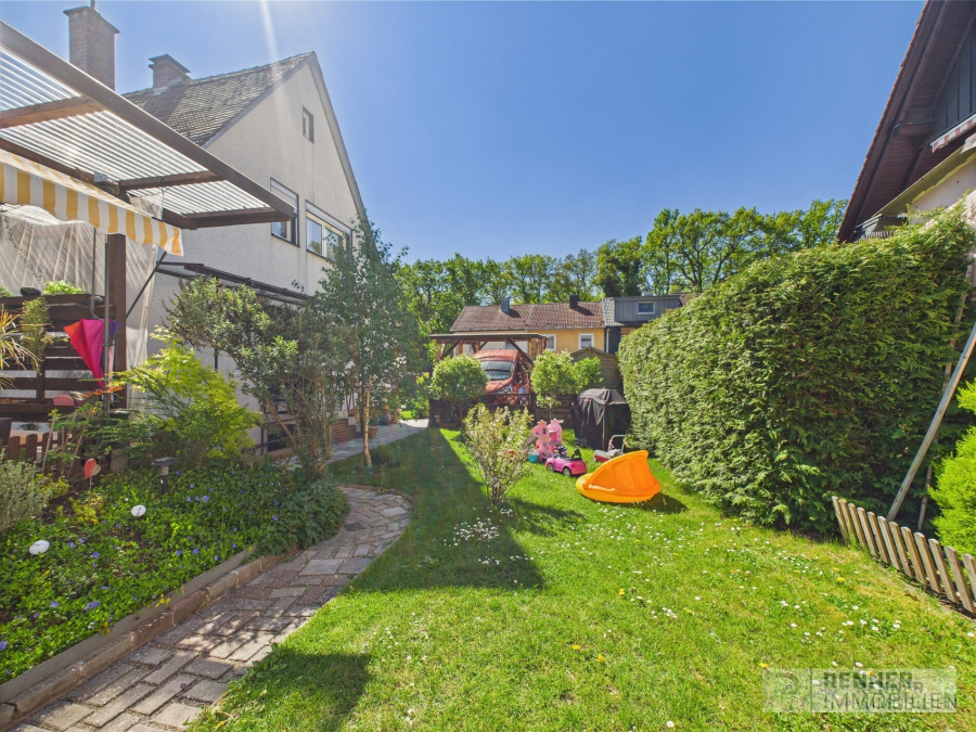 Im idyllischen Heilsbronn, direkt an der grünen Waldgrenze, erwartet Sie diese charmante Doppelhaushälfte. Mit einer großzügigen Wohnfläche von 122,55 m², bietet dieses Zuhause ideale Voraussetzungen für Familien, die Ruhe und Natur schätzen, ohne auf Komfort verzichten zu wollen. Das Haus befindet sich auf einem ca. 446 m² großen Grundstück, das mit seinem gepflegten Garten, der überdachten Terrasse und einem Pavillon einen perfekten Ort zum Spielen, Entspannen und Genießen schafft.