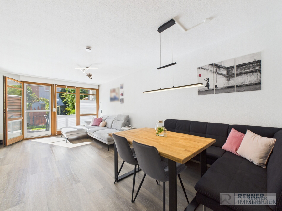 - Heller Wohn- und Essbereich mit direktem Zugang zu Terrasse und Garten