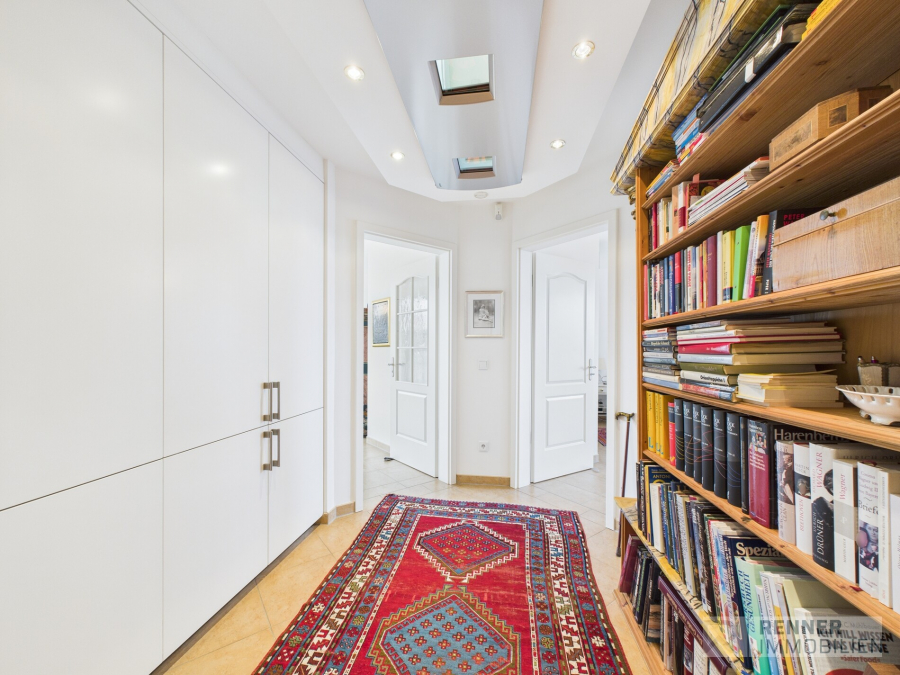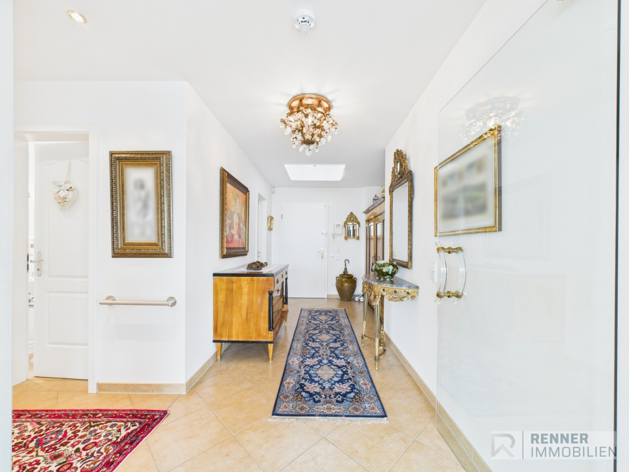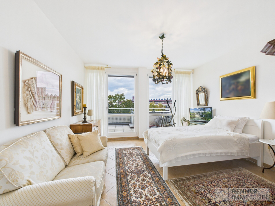 Ein besonderes Highlight ist die umlaufende Dachterrasse, die das Penthouse nahezu schwebend umgibt. Hier lassen sich Sommerabende mit Blick auf die leuchtende Burg verbringen, während die Stadt unter Ihnen in sanftem Licht erstrahlt. Der private Wellnessbereich mit Sauna und Ruhezonen rundet das außergewöhnliche Wohnkonzept ab.