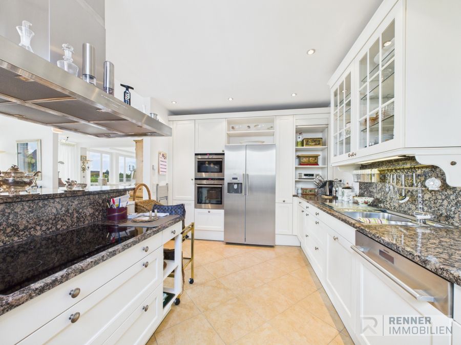 - Designküche: Mit hochwertigen Einbauten, eleganten Oberflächen und sämtlichen Geräten der Premiumklasse