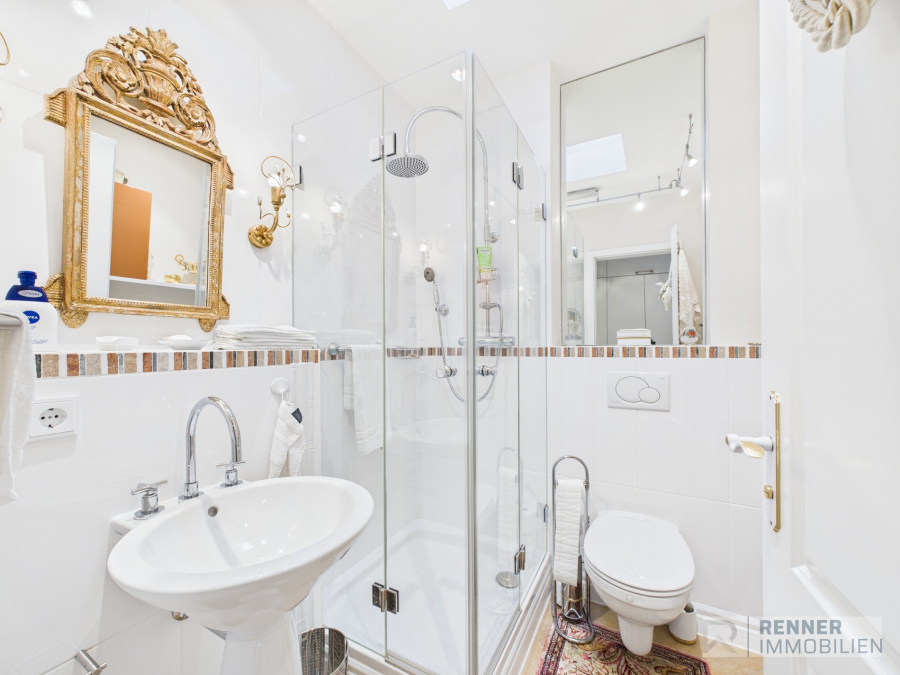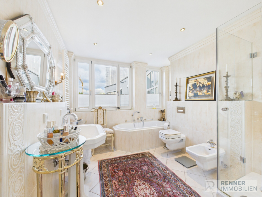 - Exklusive Bäder mit hochwertigen Armaturen, bodengleichen Duschen und ausgewählten Naturstein- bzw. Feinsteinoberflächen