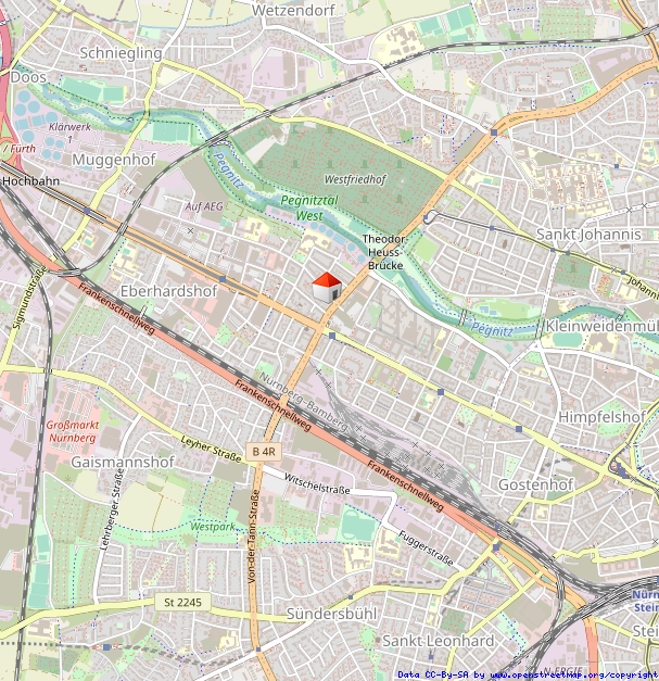 Die Penthouse-Wohnung befindet sich in einem der spannendsten Stadtteile Nürnbergs, dem lebendigen und urban geprägten Stadtwesten, genauer im beliebten Muggenhof. Zwischen Kreativszene, Industriecharme und grüner Erholung bietet diese Lage eine seltene Kombination aus urbanem Flair und Lebensqualität.