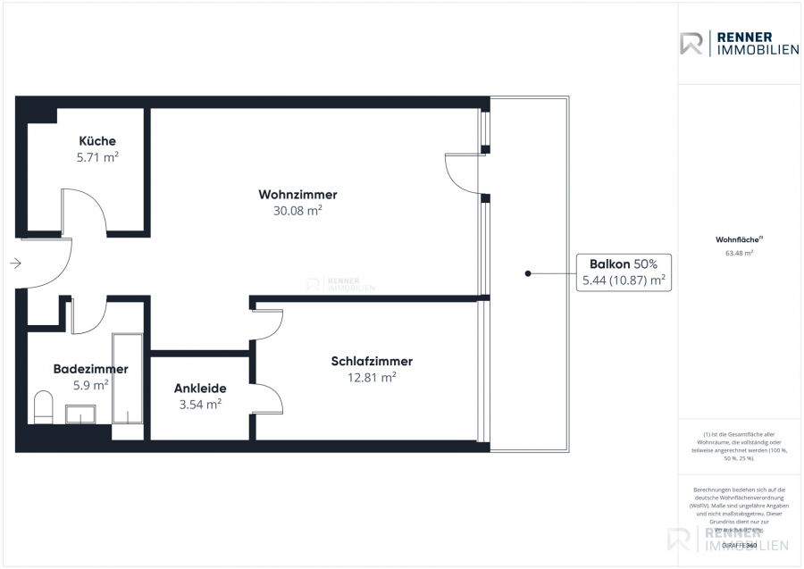Wohnfläche ca.63,48 m²