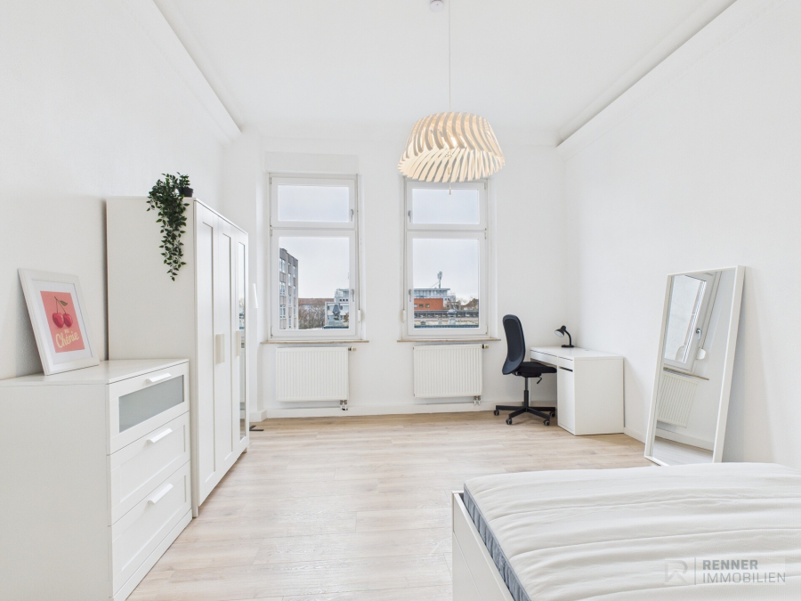 In der Sulzbacher Straße 107, 90489 Nürnberg, erwartet Sie eine frisch modernisierte und vollständig möblierte 4-Zimmer-WG im 2. Obergeschoss eines gepflegten Wohnhauses. Die Wohnung präsentiert sich in einem sehr ansprechenden Zustand und bietet ein sofort bezugsfertiges Wohnumfeld. Die Modernisierung umfasst sowohl die Zimmer als auch die gemeinschaftlich genutzten Bereiche, wodurch ein hoher Wohnkomfort gewährleistet ist.